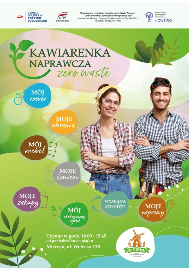 Wiele osób nie korzysta z roweru🚲 jako środka transportu z uwagi na jego zły stan techniczny , dlatego serdecznie zapraszamy do Kawiarenki Naprawczej znajdującej się w Mierzynie ul Welecka 13b gdzie pod fachowym okiem będzie można dokonać bezpłatnie drobnych napraw rowerów ( pompowanie opon, regulacja hamulców, naoliwianie łańcucha itp)